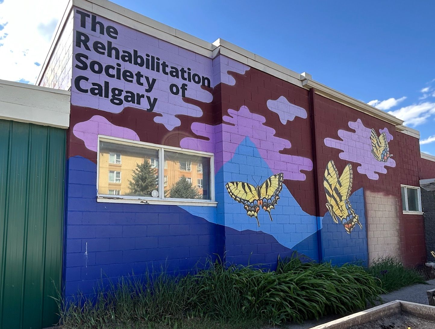The artists hope that this mural not only helps to beautify the community of Bridgeland where both artists reside, but that the community can begin to take ownership of the mural and share the stories it inspires. While painting it they had many visitors and onlookers. Both artists felt particularly touched when a member of the seniors home adjacent to the Society made a point of sharing her appreciation of the mural, and shared a touching story about the personal significance of butterflies in her life. Both artists feel hopeful that this work will have a positive impact on the Rehabilitation Society of Calgary, adding beauty to Bridgeland, and bringing joy to the passers by and commuters who witness it.”