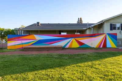 The final palette featured nine colours, including a sand and navy blue as an ode to the Stanley Jones School’s sandstone exterior and its longtime school team colour.