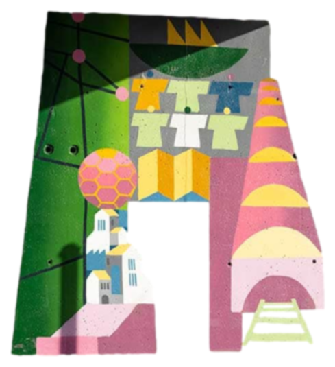 A vibrant 110-foot-long mosaic mural composed of over 950,000 tiles, depicting abstract and representational imagery reflecting East Village's history, progress, renewal and vision.