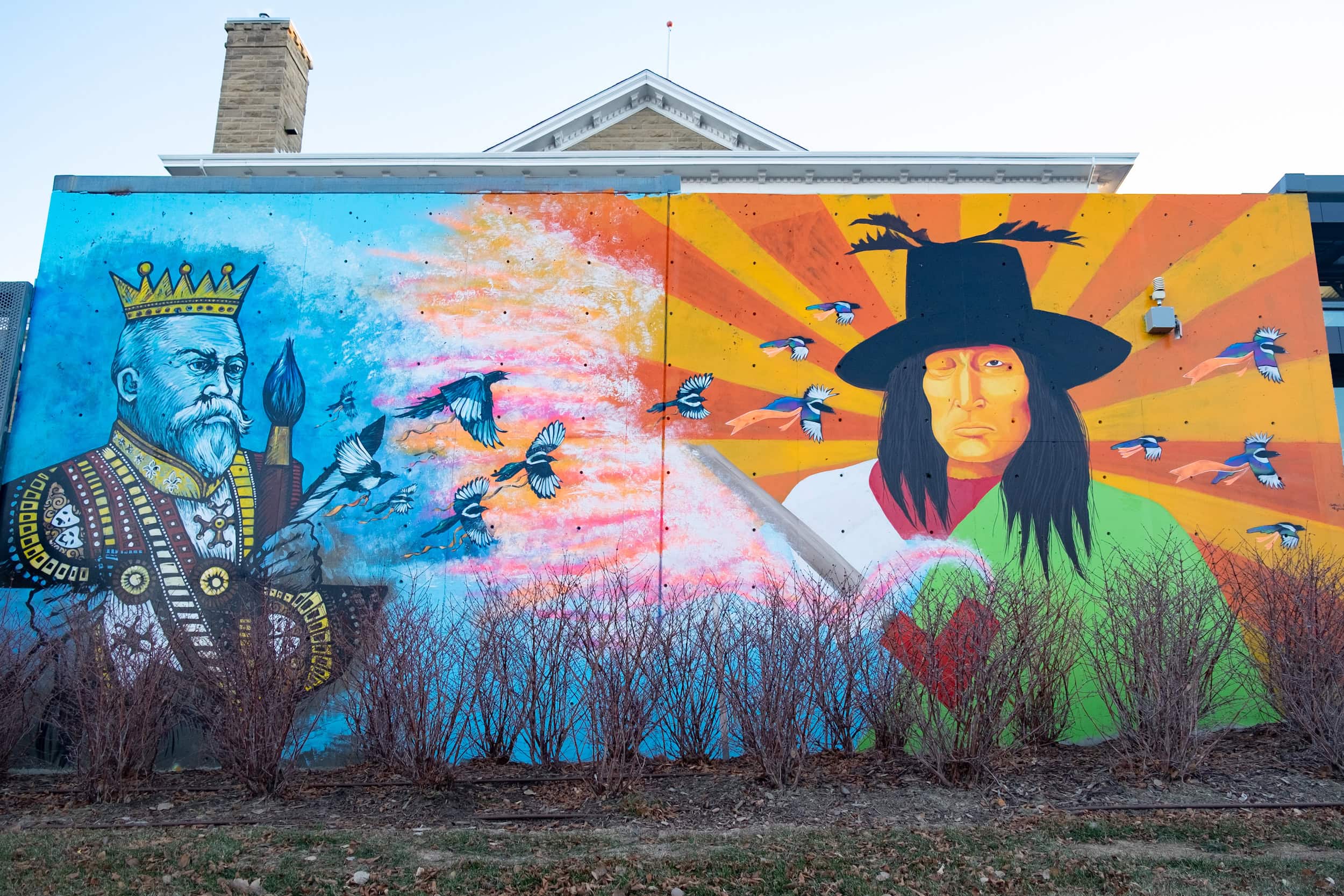 The magpies flying with orange ribbons symbolize them bringing the little ones home who were lost from the residential schools system, and also remembering the ones that survived.