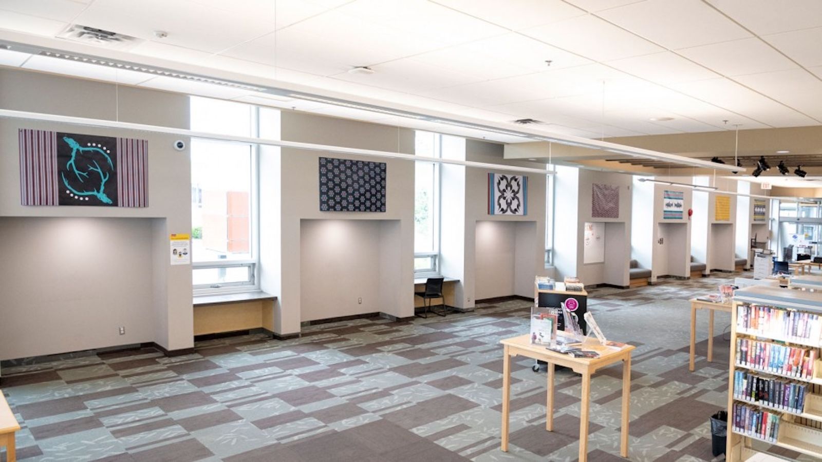 si’káániksi~blankets was created during the COVID-19 pandemic and began to take on other meanings for the artist. During the onset of colonization, Blackfoot nations survived the smallpox disease as it claimed thousands of lives. The Blackfoot continue to be a strong and spiritual people, who continue to thrive, particularly through education. Public libraries serve to provide a place for all people to gather, access knowledge, and engage in meaningful learning.