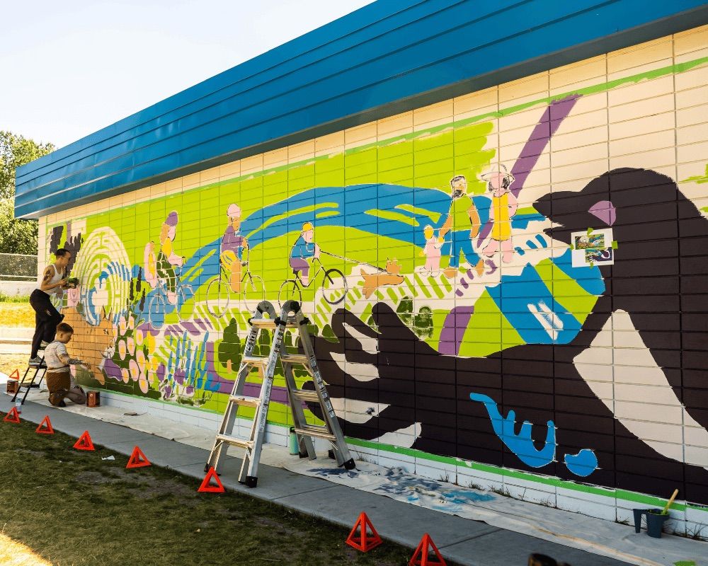 Mike Hooves mural for 2022 BUMP was made through CBC's Battle of the Burbs Contest, where Calgarians voted for the best suburb in the city with the winning prize being a BUMP mural. Mike Hooves was selected as the muralist to give this community a mural that celebrates their history, neighbourhood and stories.