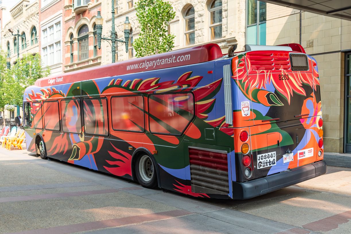 This artwork is attached to Calgary Transit buses 8263 and 8231. You can track the buses here: https://transit55.ca/calgary/bus/8263 and https://transit55.ca/calgary/bus/8231