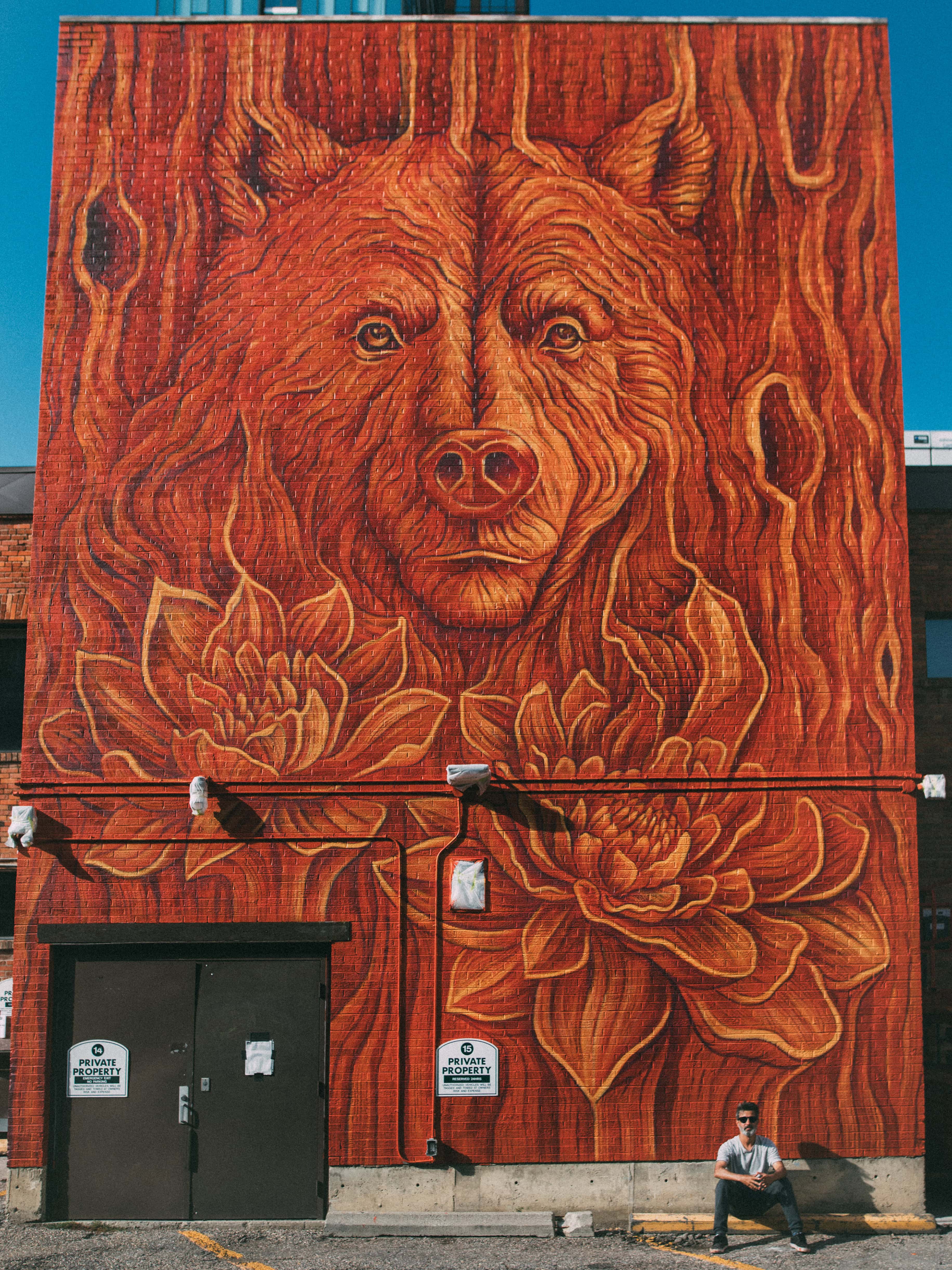 The proposal portrays some endangered species in Canada, the Gray Fox, the Grizzly Bear, and the Eastern Cougar, along with two human figures. It symbolizes our inseparable connection with the natural world. The warm tones of the color palette allude to an environmental wake-up call, highlighting the impact of the climate change and human actions that need to be contained.