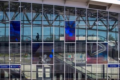 Conceptually and visually linked to the watercolour-like glass on the LRT station windows, the artwork in these railings is inspired by the artist's first visit to Calgary.