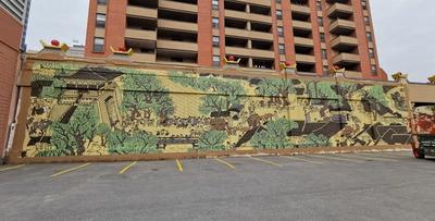 This mural is a continuation of “Along the Bow”, a mural completed in 2022 that reinterprets a historical Chinese painting with nods to Calgary’s Chinatown. The new mural incorporates Calgary specific iconography and community stories while revisiting this important piece of Chinese history.