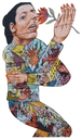 In summer, this normally dry stream flows with water and these large stones provide a pathway across. Engraved on five of these stones are phrases in Inuvialuktun and English that are personal to the artist.