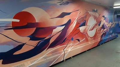 The idea of this piece is to play with contrasting the enclosed nature of the space with an overall composition that feels expansive and dynamic.