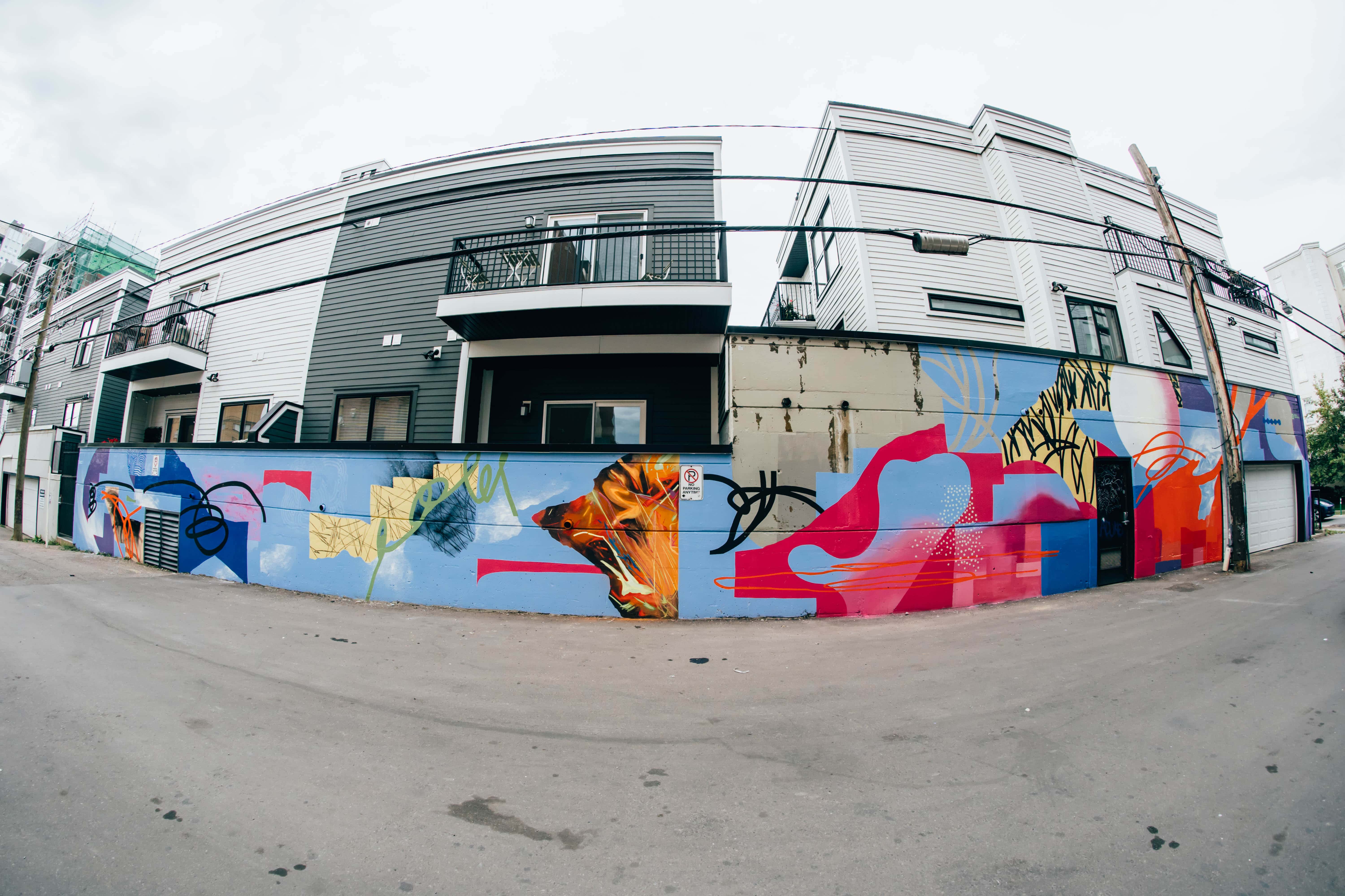 Diane and MSHL artistic concept stems from a visual conversation between two people. Through mark making, textures, shapes and positive and negative overlap, the duo immerse themselves in a large scale intuitive abstract language. They also enjoy highlighting the materiality of the wall and or the surface they work with, thus creating an important presence to the materiality of the place they are working in. Diane and MSHL create a vibrant Dialogue for all to interpret dive into.