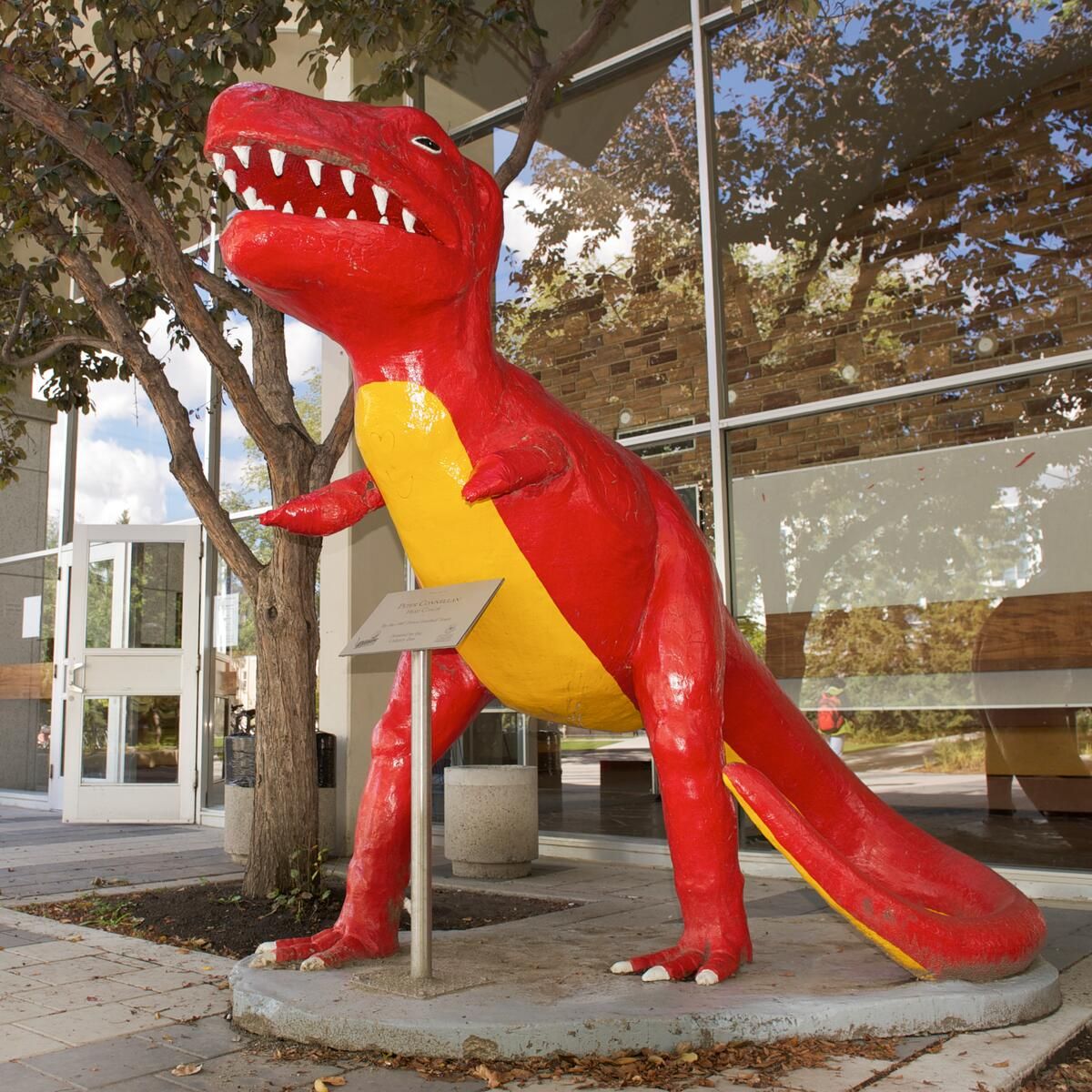 A statue of Rex, the Dinos Athletics mascot, a gift from the 1987 Dinos football team presented to Head Coach Peter Connellan.