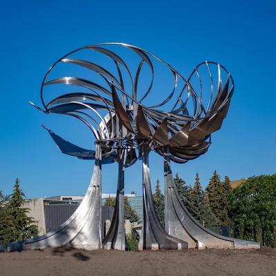 This piece came to be known, affectionately, by students as the “prairie chicken.” This is perhaps because from a certain angle the sculpture indeed looks like a prairie chicken with its wings ruffling.