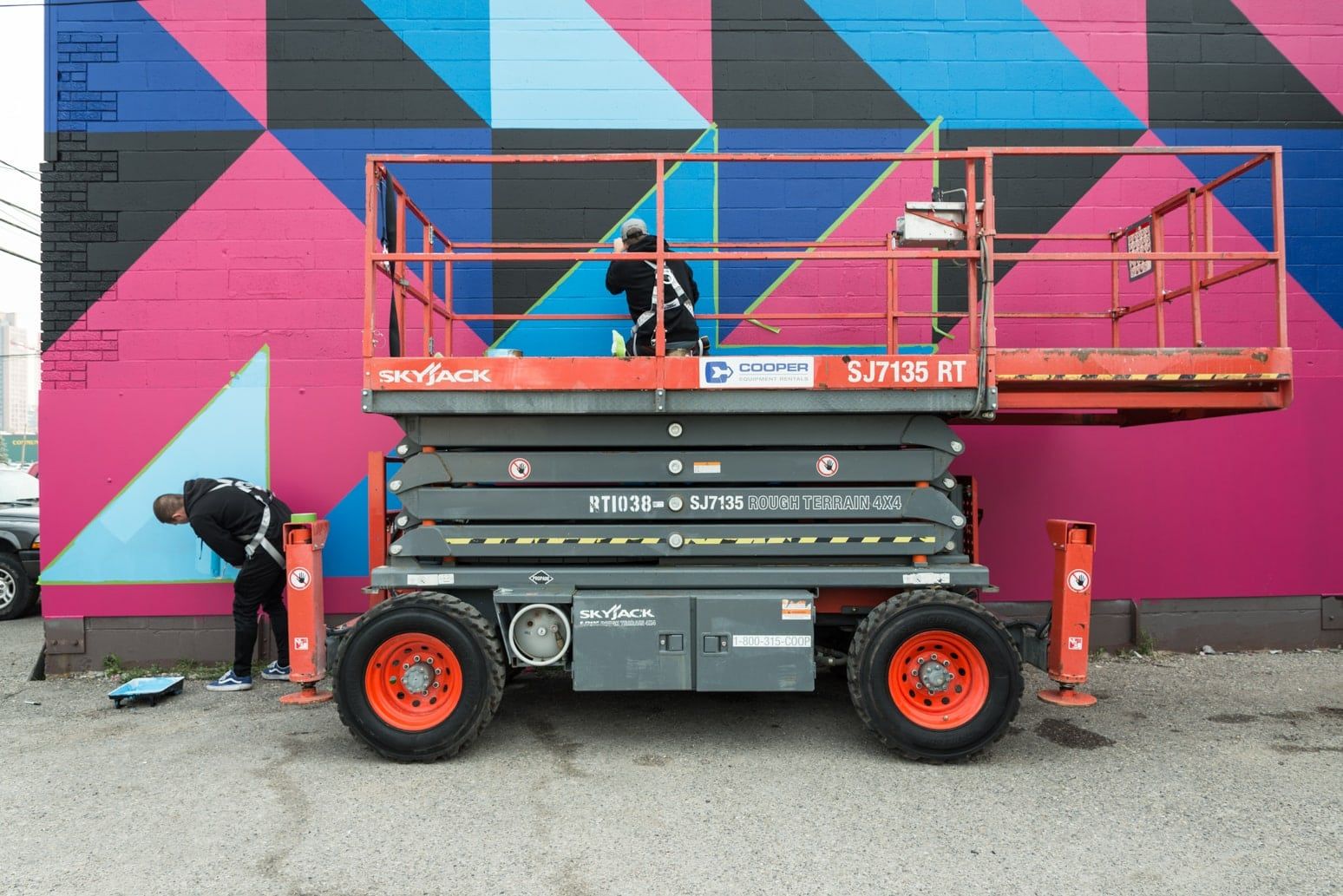 We want to paint a mural to brighten up downtown Calgary, educate people on contemporary urban art and create large scale art with motivational ideas that cannot be completed in a studio setting. Public art bridges the gap between commercial and personal work and allows people to experience, interpret and discuss art in a public environment without the pressures of an institution. Our approach is using hard edge geometric abstraction by using a combination of colourful geometric shapes and patterns. Inspired by optical art, pattern painting, colour field painting, large scale abstract murals and colour theory, we have chosen to team up on this project after working on various other public art projects, large scale murals and collaborations. Our work is motivated by the creation of a unique feeling, message and idea. The art we intend to create is meant to be fun and inviting, while also creating curiosity and positivity in a public sphere. This will inspire people to generate new ideas, form thoughts and share amongst one another.
