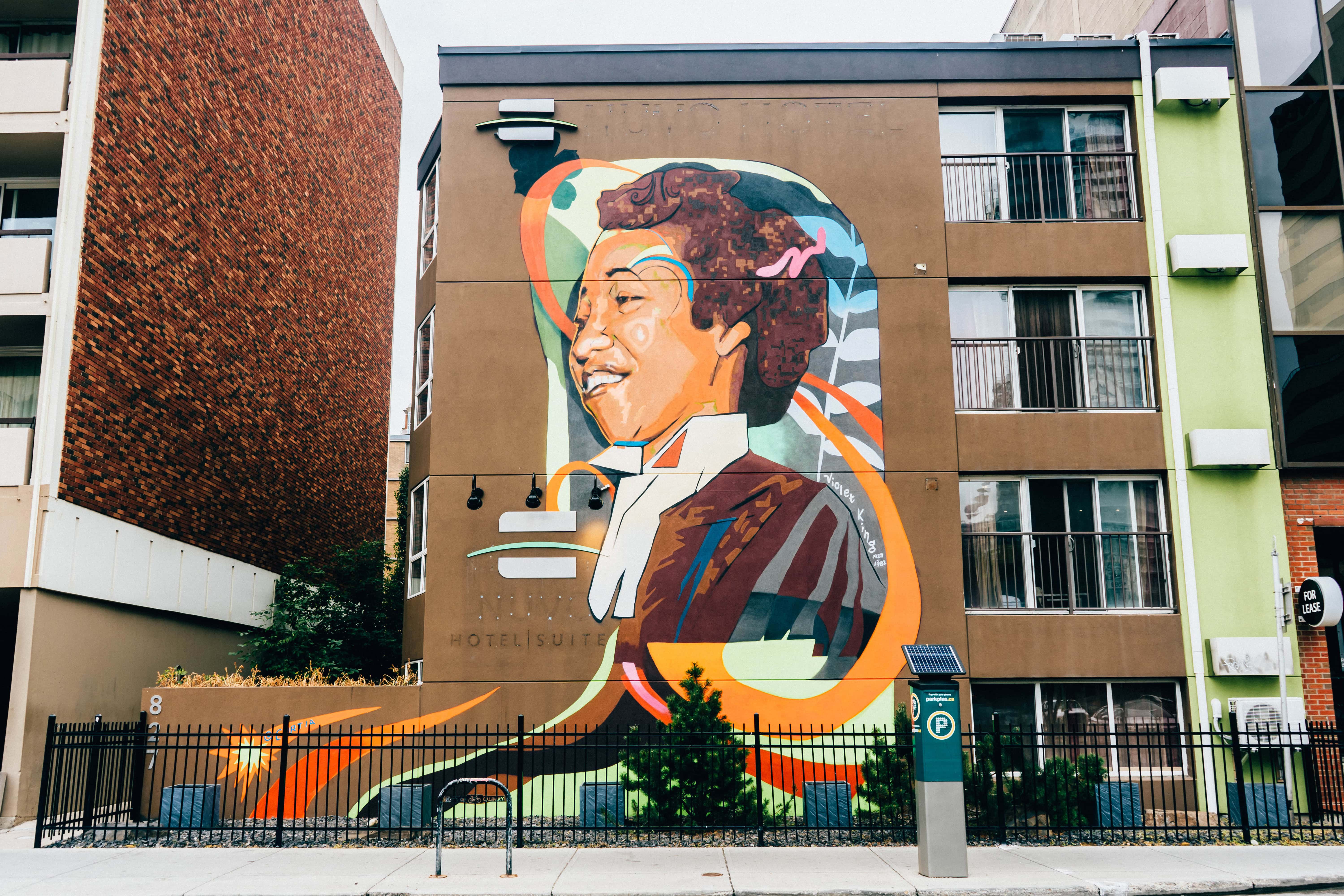 "My design is based on the first Black woman lawyer in Canada, Violet King. I choose to depict her in my design not only due to her connection to Alberta, being born in Calgary October 18th 1929, but for her prevalence as a figure of Canadian History. Violet was an adamant purveyor of justice practicing criminal law in Calgary and later in the US. This mural will serve as a memorial and celebration of Kings life and legacy with a hope that more folks will learn about her story."