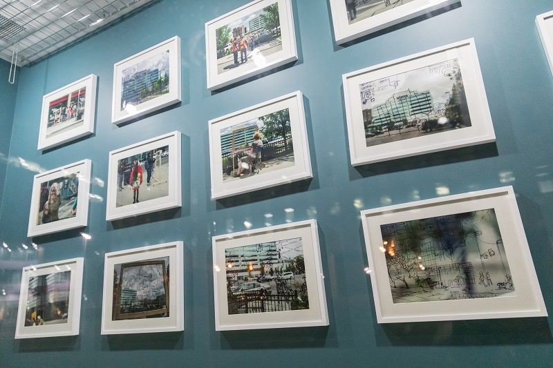 Ideas from passersby of the health centre were gathered to help create this piece. Participants were encouraged to draw the centre and take photos of their drawings which were stored on an Instagram account. The artists selected the most powerful images and created Walking Window.