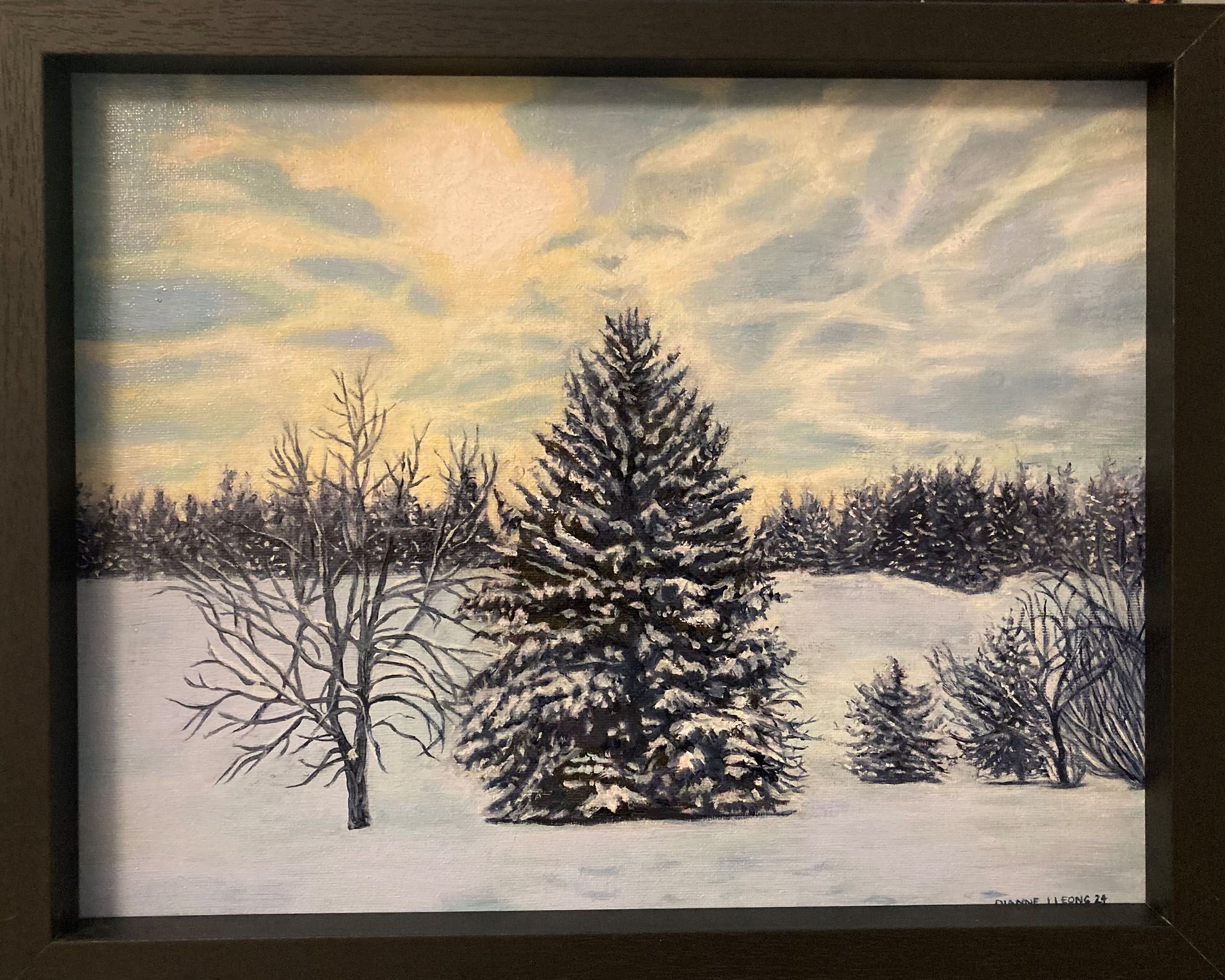 Winter is a time of rest, and introspection. This winter twilight scene is a metaphor for a life that is well-lived with all its challenges and successes. This painting pays homage to the aged–the elderly, and the knowledge, wisdom and experiences that those in the ‘winter season of life”’ impart to us. There is abundant life and opportunity in every season of life.