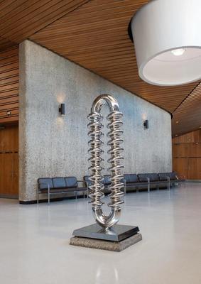 This kinetic sculpture has become a good luck charm for over a quarter of a century. Usually seen in motion, the mesmerizing turning of the Zipper is said to bring peace to the students, allowing them to concentrate on their studies or exam-writing that takes place in the adjacent classrooms.